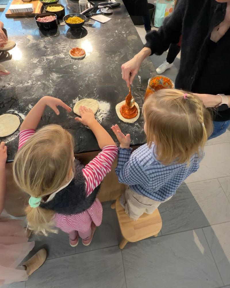 Am Nachmittag wurde es dann besonders fröhlich: Beim Mitmach-Programm „Wir backen Pizza wie die Großen!“ durften die Kinder selbst Teig kneten, Soße streichen und ihre Pizza belegen. Der Stolz und die Freude waren groß, als die selbstgemachten Pizzen gemeinsam genossen wurden.