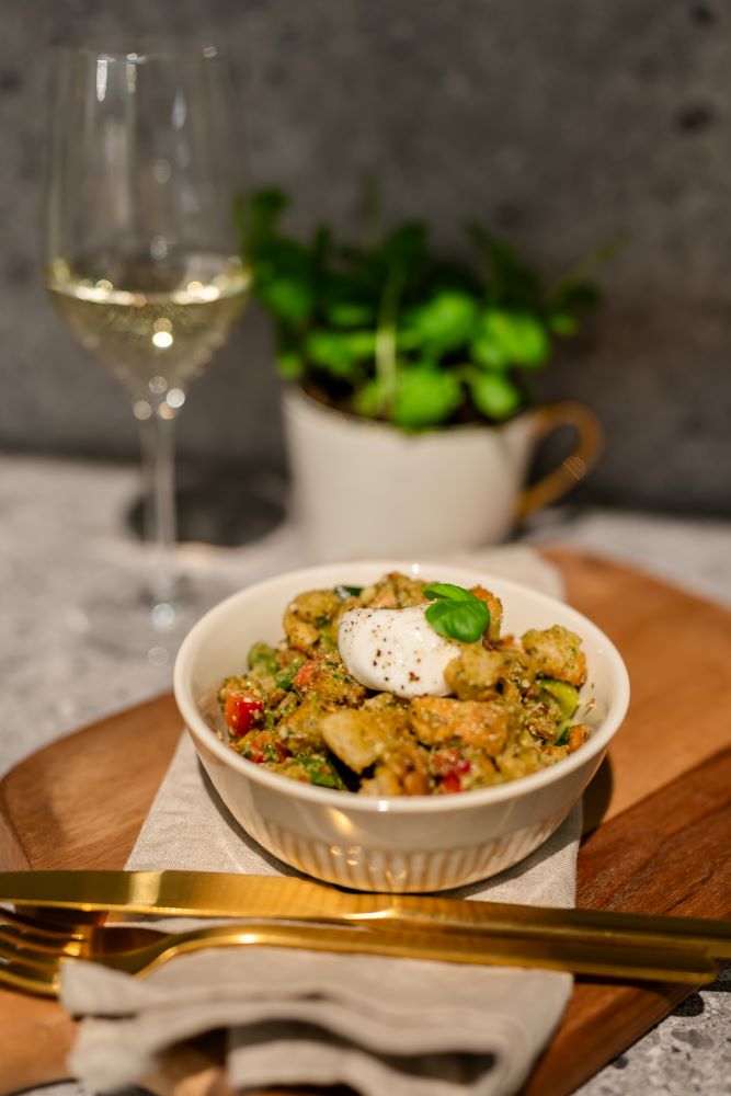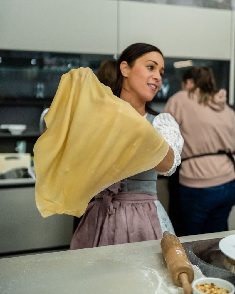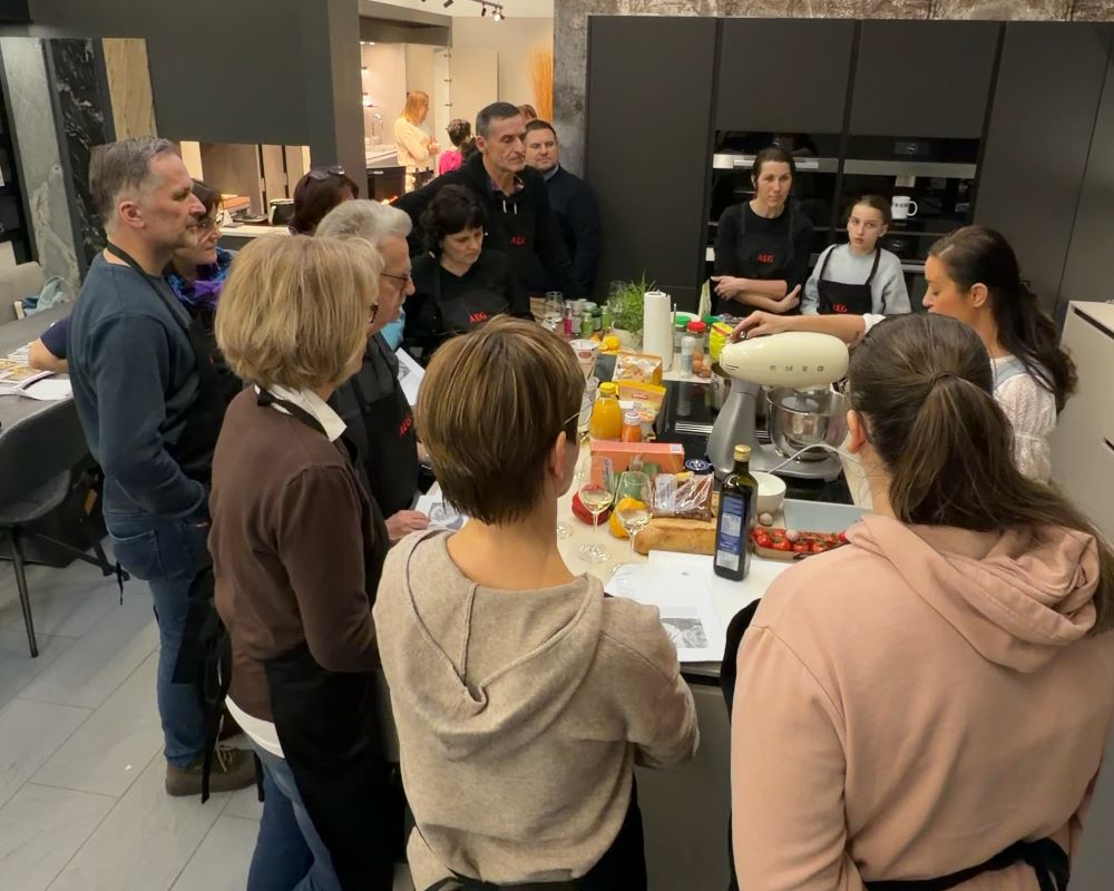 Nach einer kurzen Geschirrwaschpause folgte direkt der zweite Workshop „Bella Italia“ mit zwölf begeisterten Teilnehmer:innen. Gemeinsam entstanden italienische Klassiker wie Panzanella, Minestrone, Thunfisch-Oliven-Ravioli und Schoko-Cantuccini.