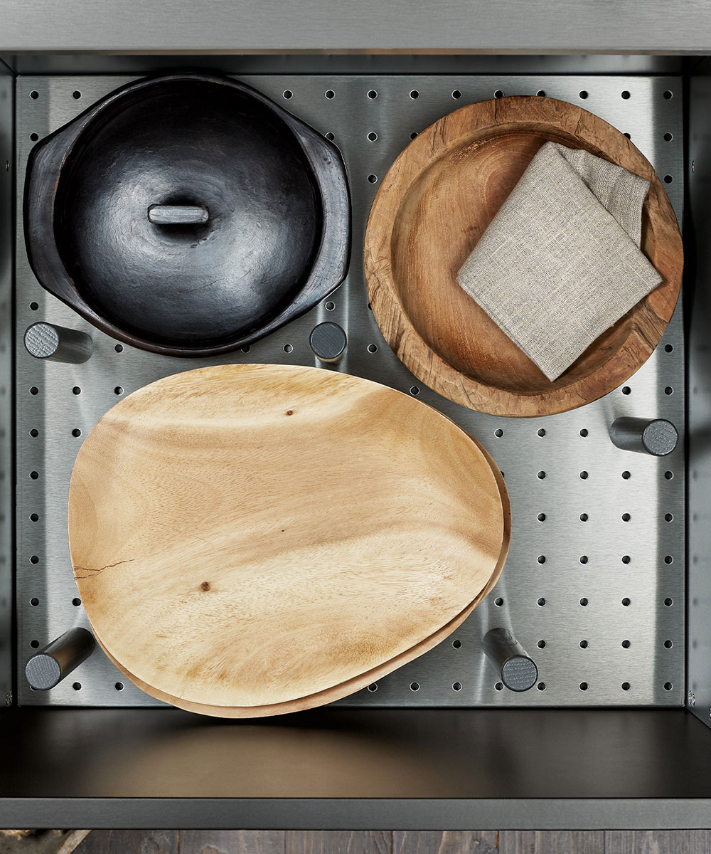 Ordnung endet nicht bei der Entsorgung. Das Öko Universal System mit Komposteimer und entnehmbaren Behältern integriert sich unauffällig in deine Küche und sorgt dank Metallabdeckung für Hygiene.